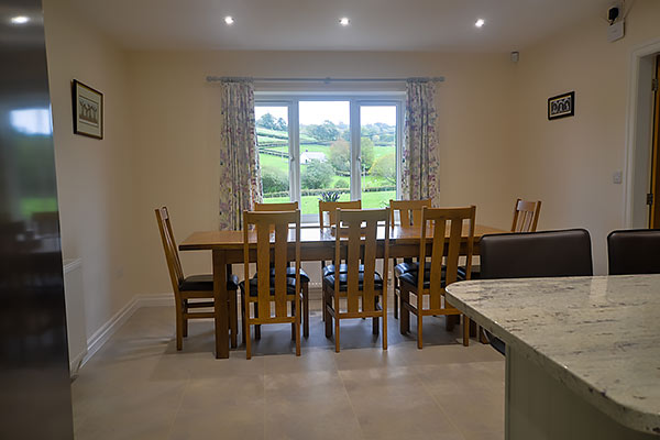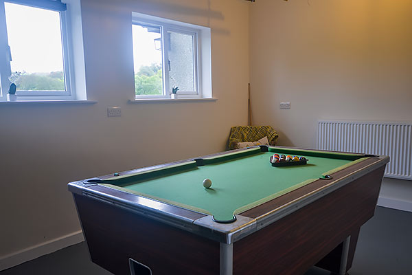 Downstairs there are 3 further bedrooms (1 double, 1 king size double and 1 twin) and a bathroom with shower and bath. There is also a kitchen-diner, lounge, pool room and games room with table football, TV, DVD and Xbox. There is a TV with DVD and freeview in the comfortable lounge which has fine countryside views, and french doors opening on to a large patio with table and chairs for outdoor eating or just relaxing in the fresh air. Free WiFi is available for guests to use for internet access.